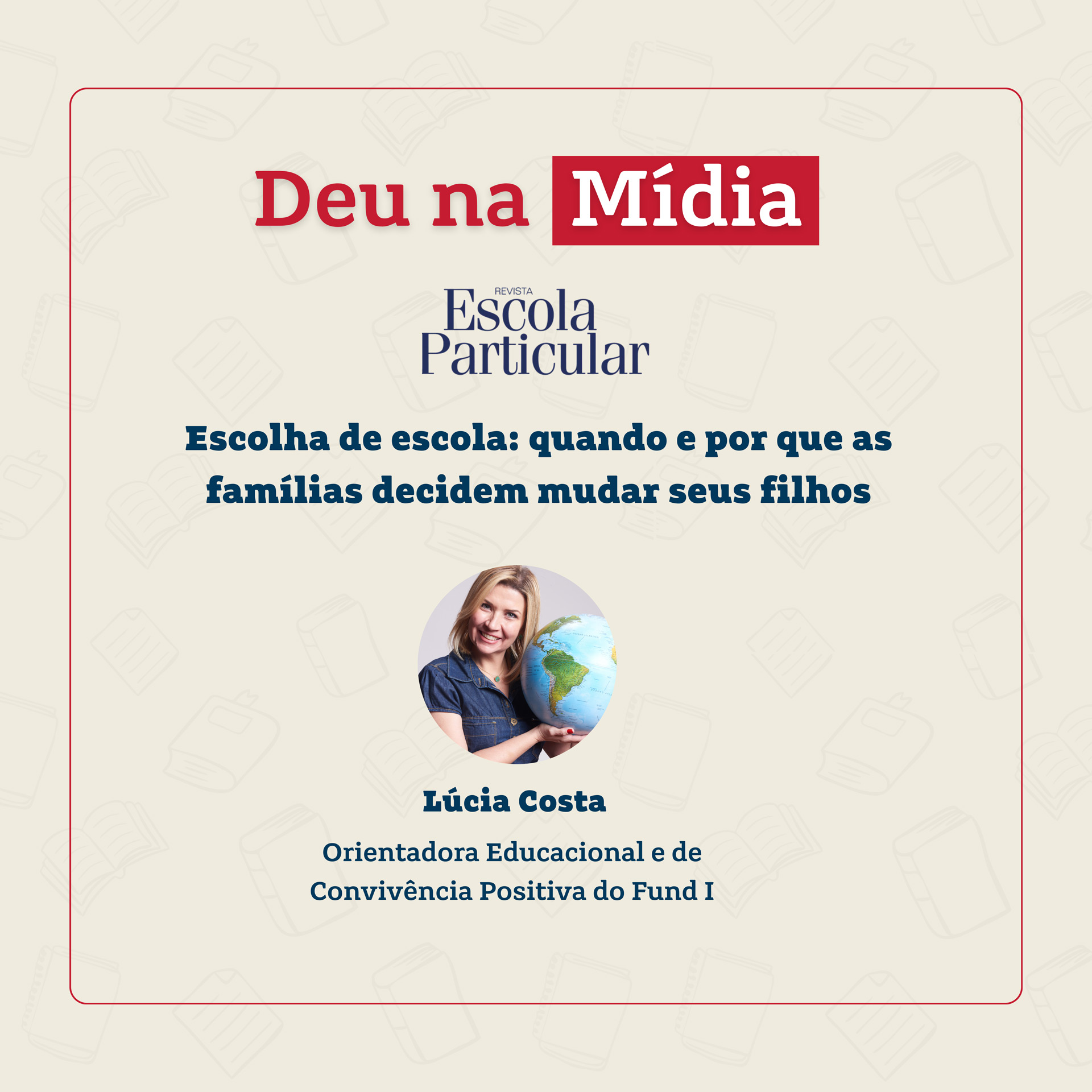 A Orientadora Educacional e de Convivência Positiva do Fund I do Band, Lúcia Costa, assinou uma matéria especial para a Revista Escola Particular. No texto, ela propõe uma reflexão aprofundada sobre os valores e os aspectos que norteiam a decisão das famílias na escolha de escolas para seus filhos.