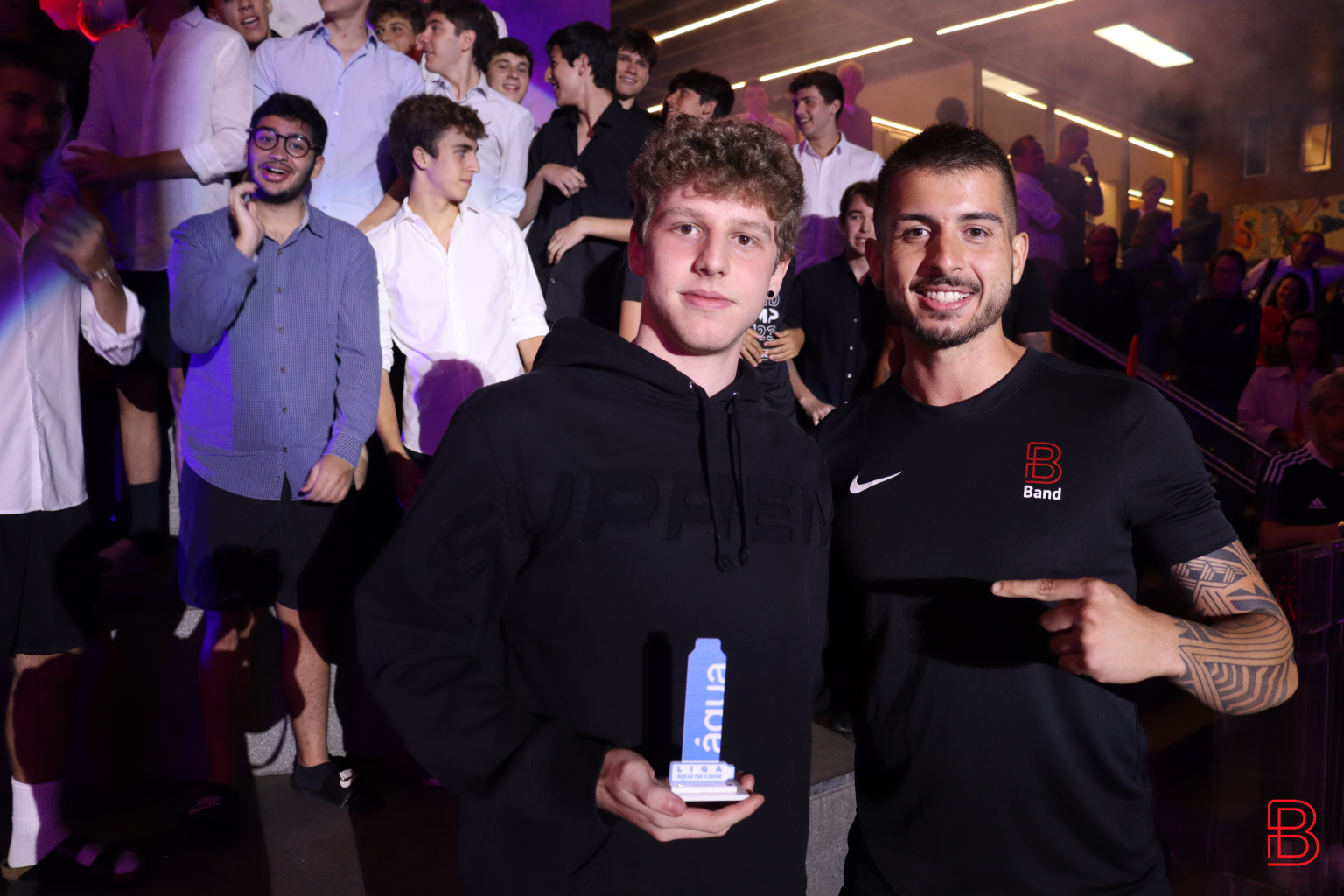 Durante a premiação, o aluno Miguel Farinha, aluno da 1.a série do Ensino Médio, recebeu o prêmio de melhor jogador do ano na categoria de Handebol.