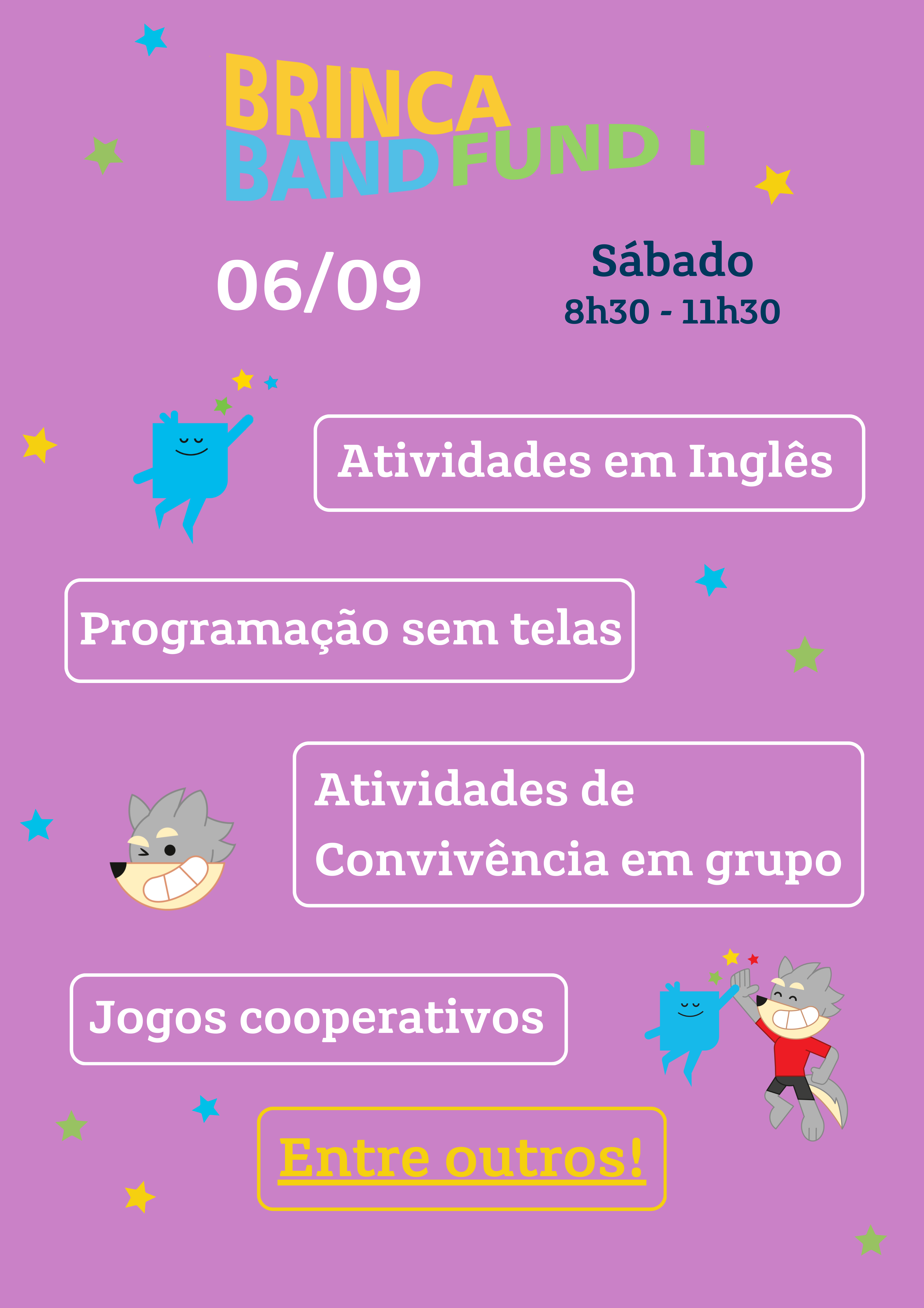 É com grande alegria que convidamos a sua família para participar do Brinca Band – uma manhã inteira de atividades esportivas, culturais e pedagógicas junto com os educadores do Band.